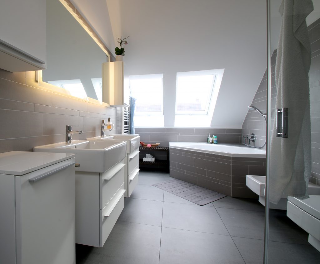 Bei diesem Ausbau eines Dachgeschosses für zwei Wohneinheiten in einem Mehrfamilienhaus in Berlin-Friedrichshain wurde die Dachkonstruktion komplett abgebrochen und neu erstellt. Außerdem wurden vier Terrassen im Dachgeschoss und eine 50m² große Aufdachterrasse erstellt.