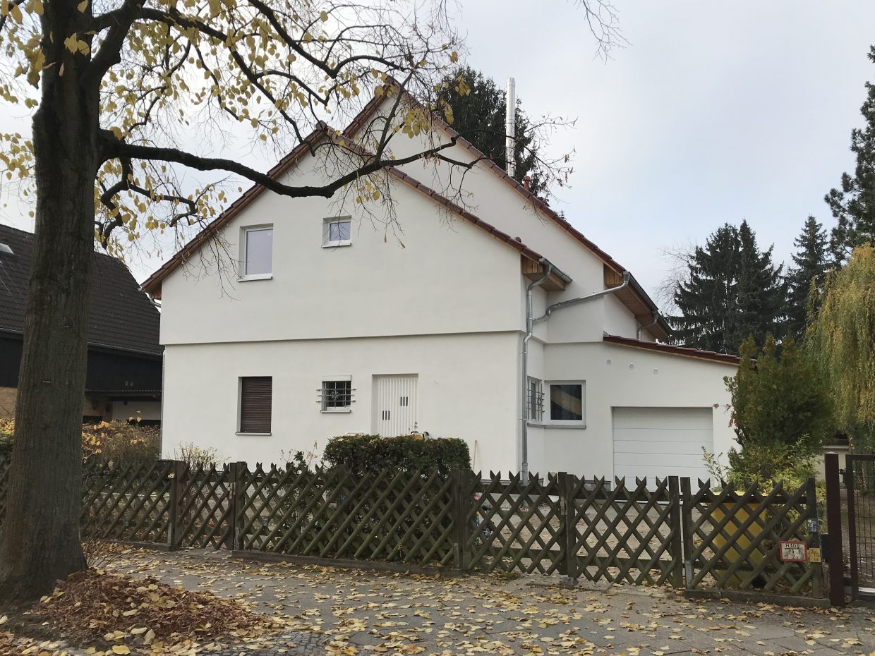 Der Bungalow aus den 60er Jahren in Berlin-Zehlendorf sollte um ein nutzbares Dachgeschoss erweitert werden. Gefordert waren die privaten Schlafzimmer für Eltern und zwei Kinder sowie ein zusätzliches Badezimmer. Das begrenzte Budget forderte nach einem effizienten Entwurf. Drei simple versetzte Giebeldächer mit unterschiedlichen Neigungen, die die Volumen des Erdgeschosses überspannen, waren die Lösung. Eine besondere Herausforderung war auch die Tatsache, dass das Erdgeschoss des Hauses während der gesamten Bauzeit bewohnt blieb.